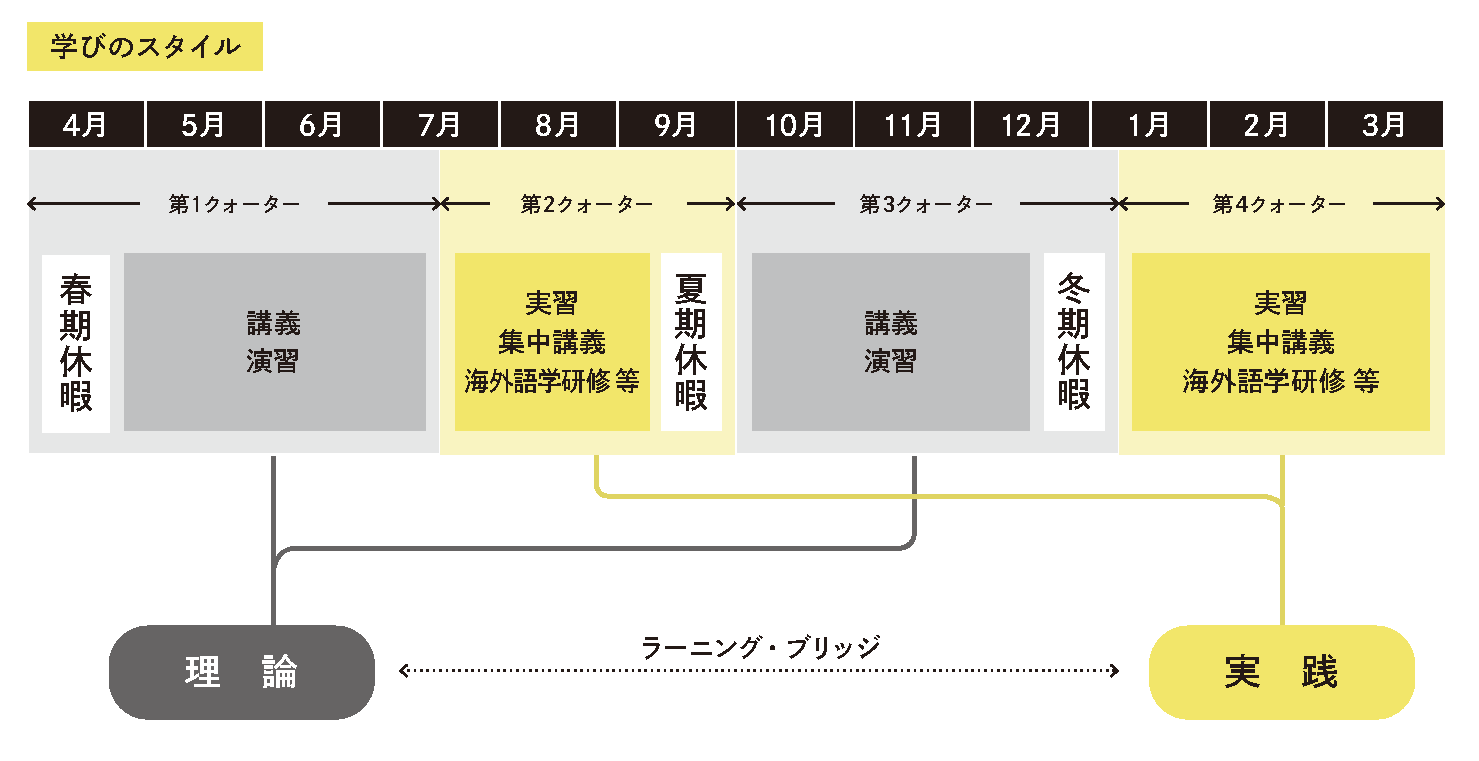 1学年を4期に区分するクォーター制を採用。