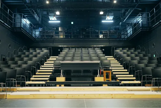 1年次に全員が演劇的手法による「コミュニケーション演習」を履修。演劇を活用して表現力などを身に付け、多様な人々との交流が必要な、これからの社会で必須となる異なる価値観の間をつなぐ「対話的コミュニケーション能力」を養成します。また、1年次はシェアハウス方式の全寮制とし、学生同士の交流を通じて、協働性やコミュニケーション能力を養います。
