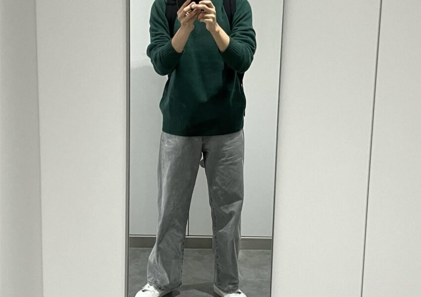 なんとなく入ったユニクロで珍しく緑色のセーターを買いました(安かったので)