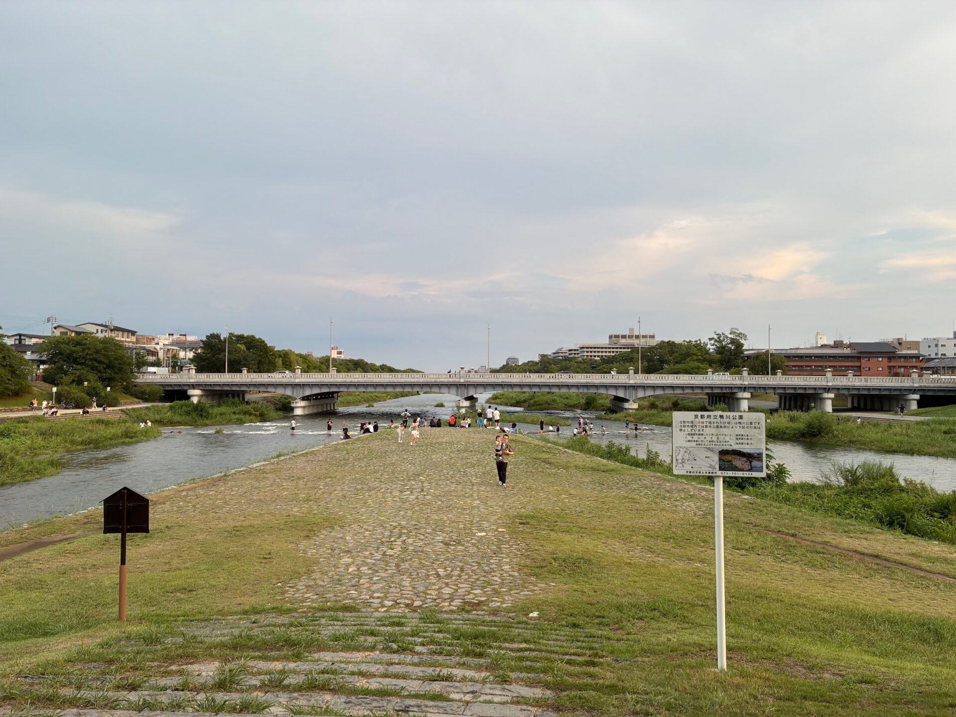 鴨川は連日の雨でいつもより水かさが多く、流れもとても速かったです。水遊びをしている人たちがたくさんいて、私も混ざりたかったのですが、動きにくい服装をしており、遊ぶと流される未来が見えたので断念しました。