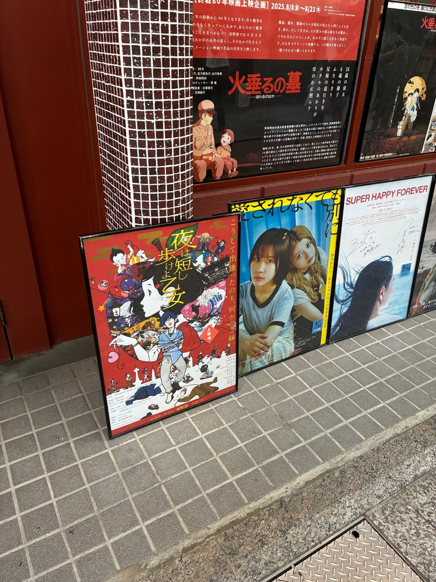 そして、出町座という映画館にも行ってきました。『夜は短し歩けよ乙女』を上映中とのことで、ロビーにはたくさんの森見さん作品関連グッズがありました。