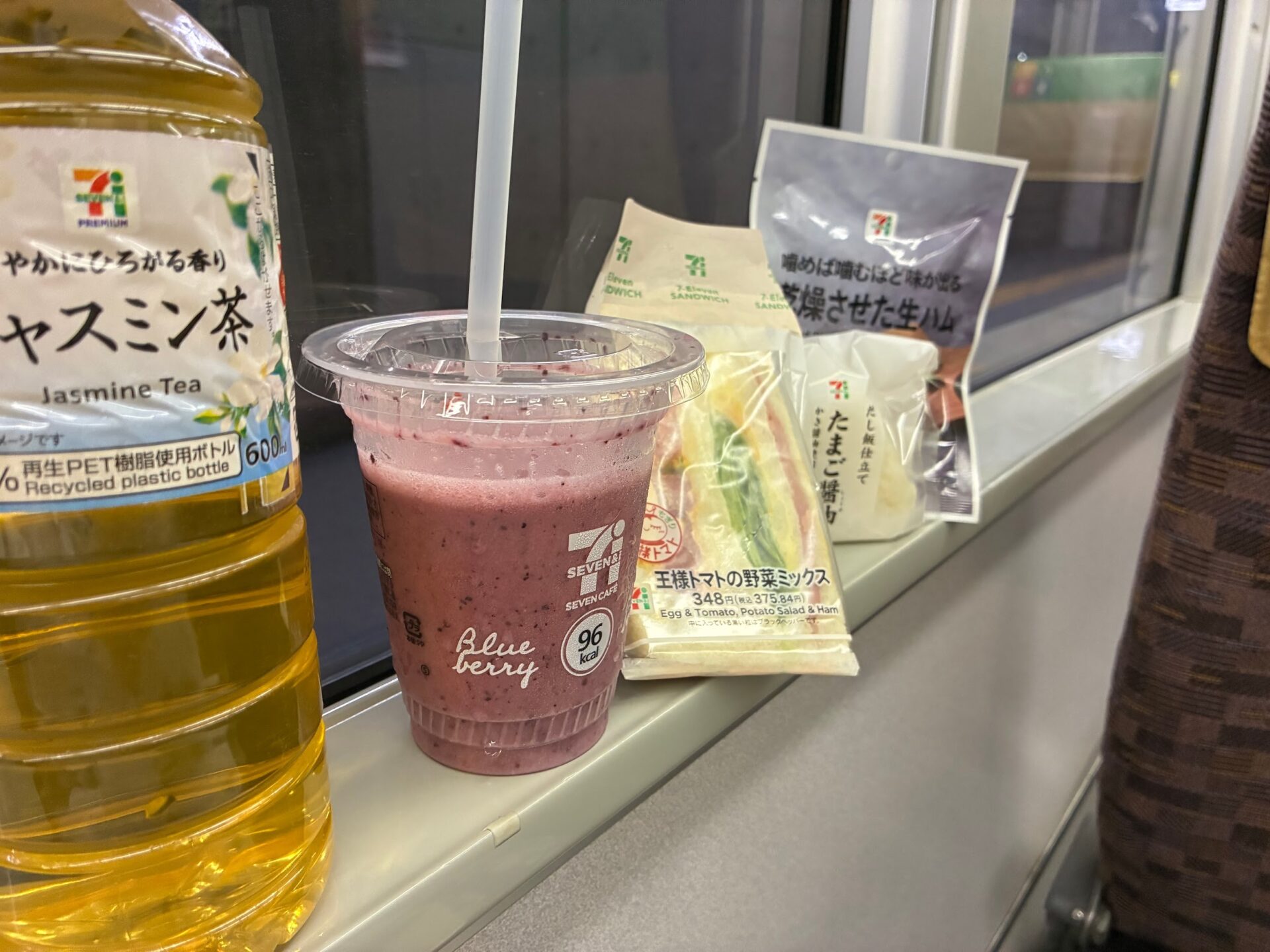 本当は京都っぽい夕食を食べて帰りたかったんですけど、そんな時間もお金もなかったので、豊岡にはないセブンイレブンで食べたいものを食べたいだけ買いました。