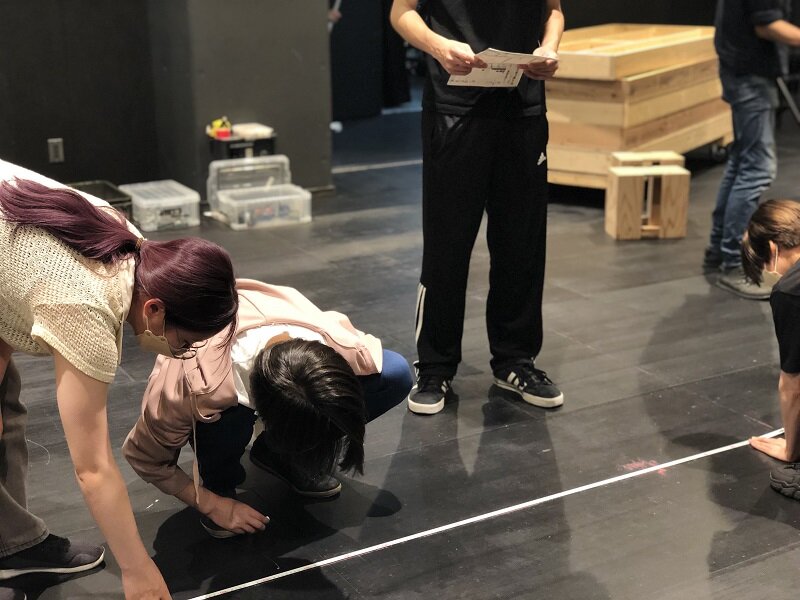 この講習会を経て、やっと自分たちの力で自主公演などができるので、我々の構想は膨らんでいく一方です。平台を組むときに初めて見る真っ直ぐ線を引くアイテムが出てきたり、『OZ2022』の舞台平面図を見せて頂いたり。照明もカラーフィルターを入れたり、卓を触ったりしてこういう演出が作れるかも、と考えていました。