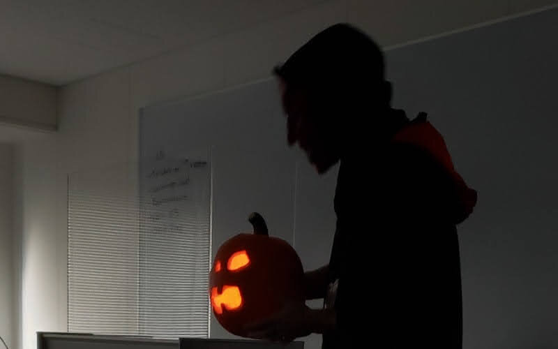 英語の授業では先生がジャック・オ・ランタンを持ってきてくれました。
