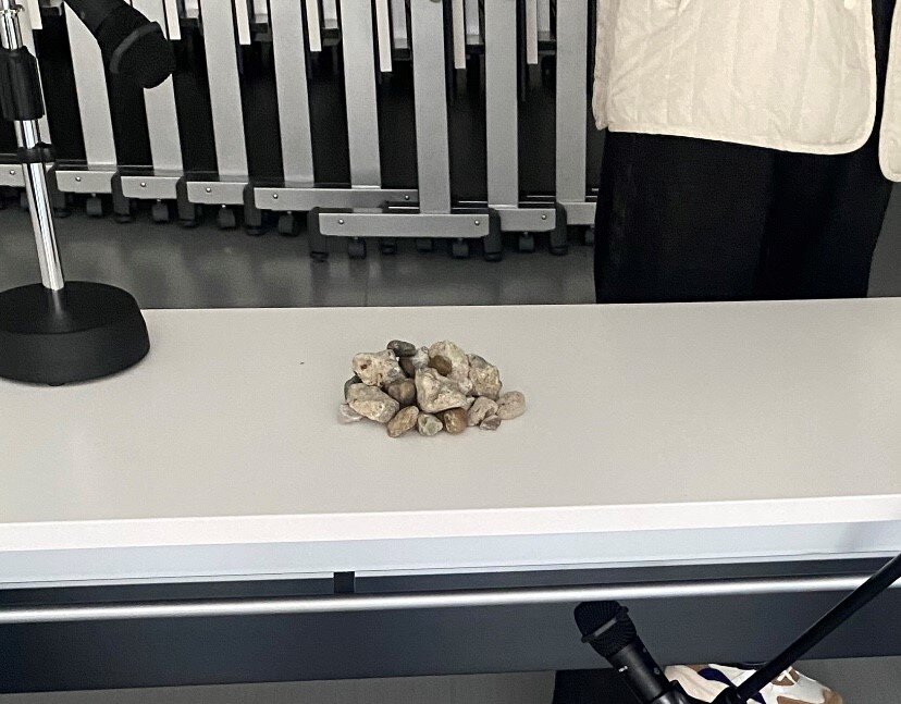 石を使って、音を出したり、楽譜を作って音を使って上演を行いました。