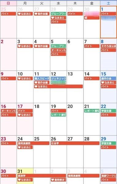 とはいえ油断は禁物。見ての通り前回のブログ執筆時(4月)からあからさまに増え続けている予定と、先生も先輩も口を揃えて「みんな講義に来なくなるよ…。」と微笑む魔の第3Qに怯えながら、干からびないよう備えなくてはなりません。