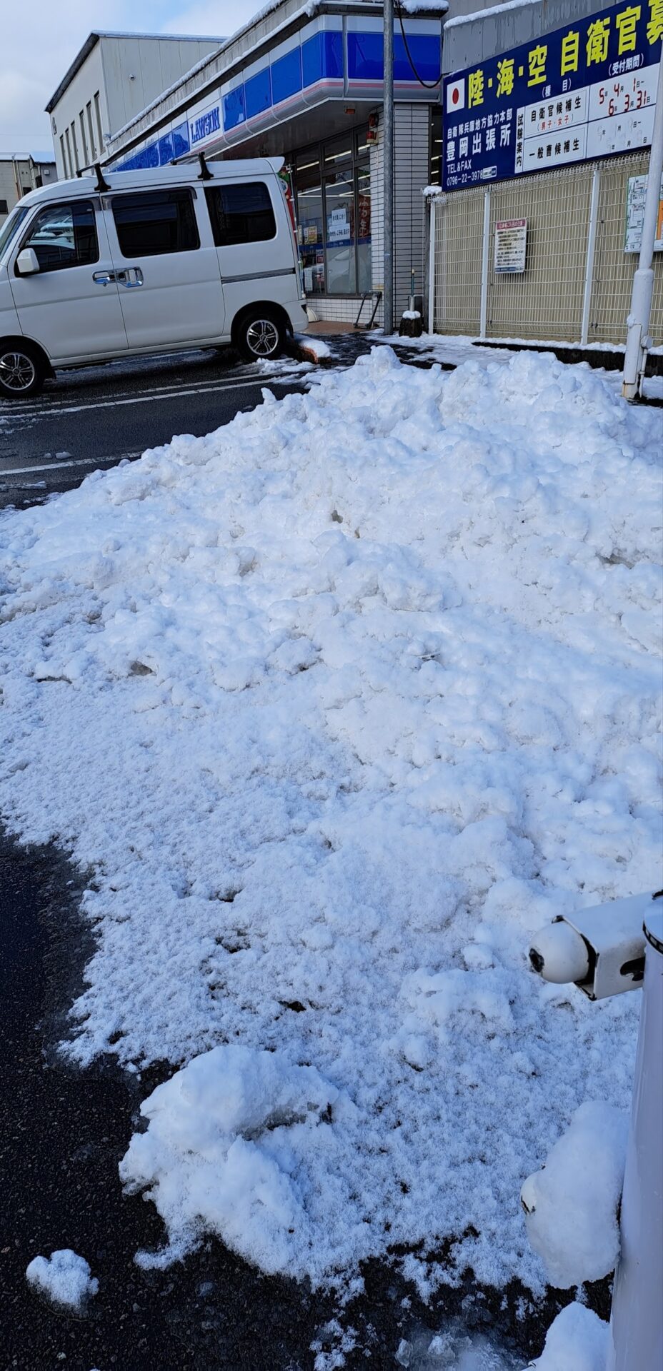 これは、某コンビニの駐車場の駐輪部分です。なるほど歩道があんだけシャクシャクしててチャリ使われへんねやったら、駐輪部分に雪集めてもええっちゅー話か!って感心した時の写真です。なんですけど、歩道がシャクシャクせんくなってチャリ使えるようになってもここの雪は溶け残ったまんまで駐輪できひん状態やったんで、それでええんか…?って、なんかこう…。