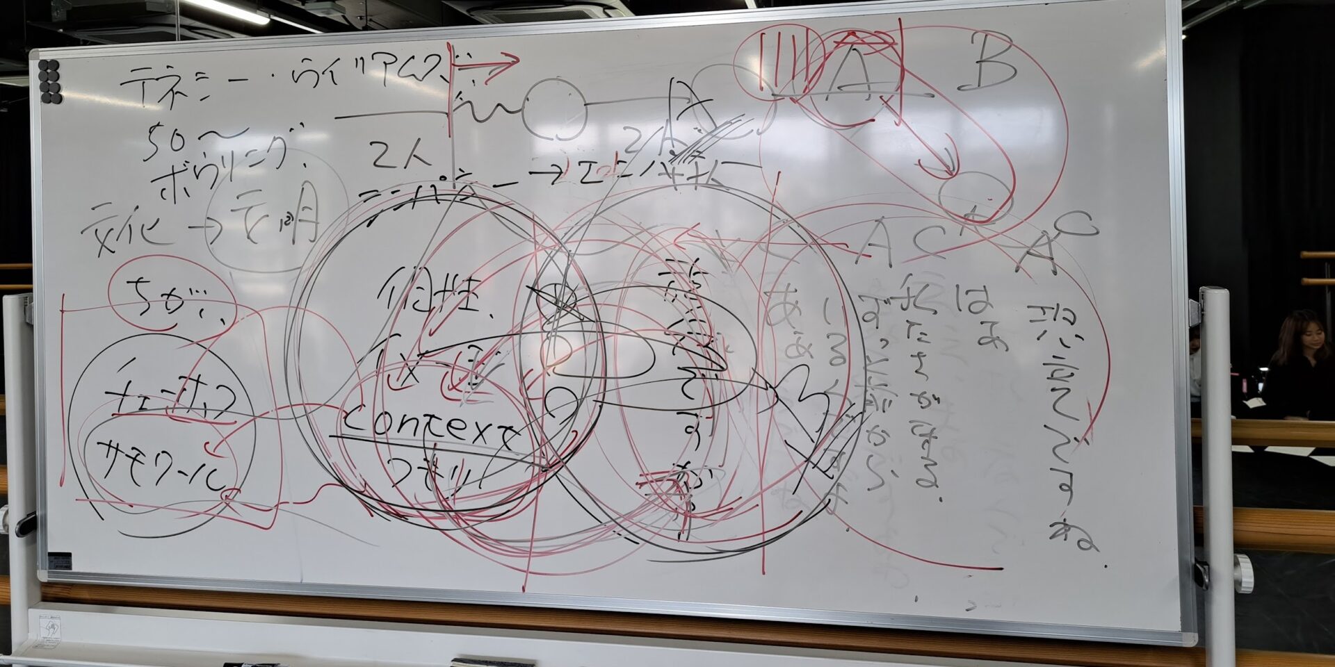 ちなみに、サムネの写真はコミュニケーション演習の授業中に撮ったホワイトボードです。大学のパンフレットで、学長が鏡張りの壁の前で椅子に座っている人たちに何かを言っている写真、見たことないですか?私は初めてあの写真を見た時、衝撃を受けたわけです。