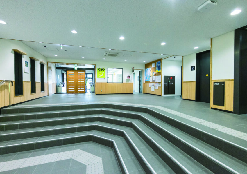 1階:交流室、事務室、ラウンジ、給湯室、メールコーナー、多目的トイレ