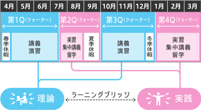 1学年を4期に区分するクォーター制を採用。