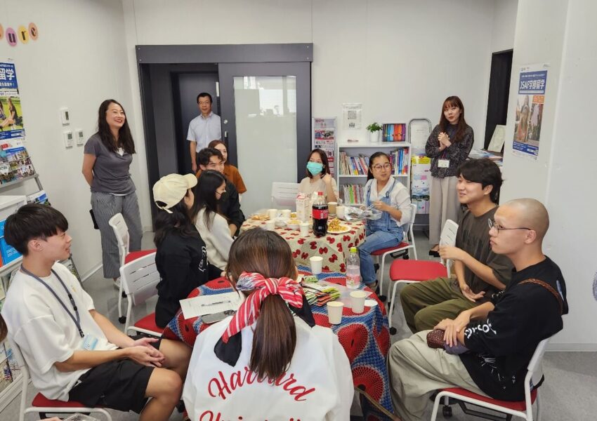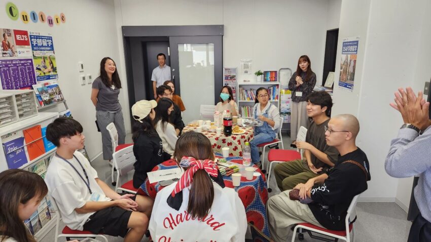 国際交流センターで、日本人学生と留学生の交流会を実施しました。まずは留学生の自己紹介。続いて日本人学生も。最初は緊張していた留学生たちにも、少しずつ笑顔が見られるように!留学生から韓国のりのプレゼントや、台湾の食文化の話などを聞いて盛り上がりました。