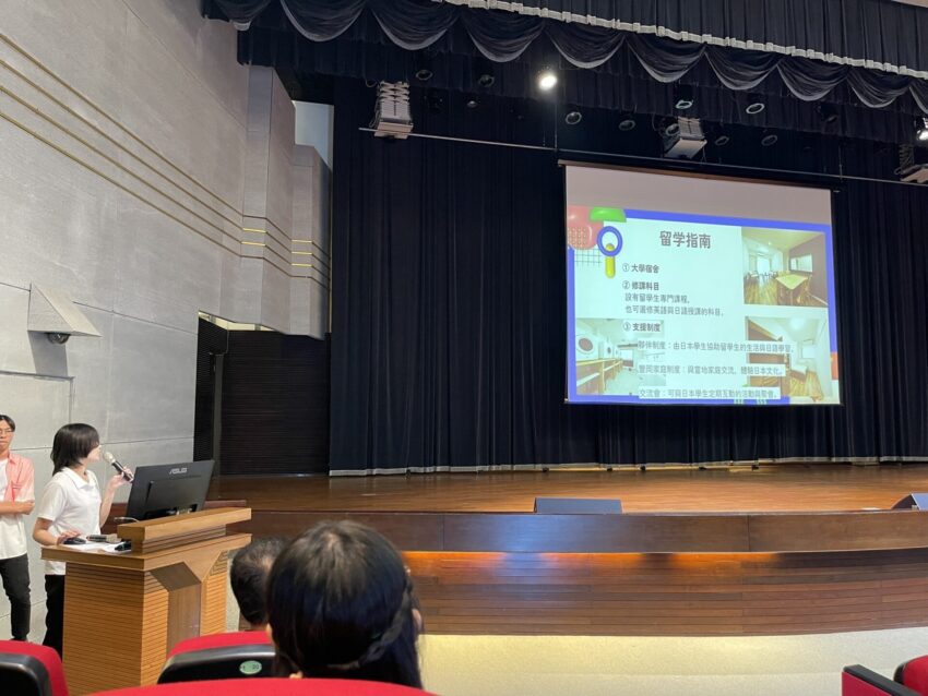 もちろん、不安がまったくなかったわけではありませんが、何とかなる!という気持ちでいました。嶺東科技大学に留学していたCATの先輩がいたため、出発前から情報を共有して手続きを進めることができました。私たちが現地で実際に見て、経験したことが、留学に行く後輩たちの参考に少しでもなれば嬉しいです。また、日本語学科の学生約200人の前で、CATや豊岡、そして私の出身地である広島について紹介するプレゼンテーションを行いました。この発表をきっかけに、CATに行ってみたい!と思ってくれる学生が一人でもいてくれたら嬉しいです。