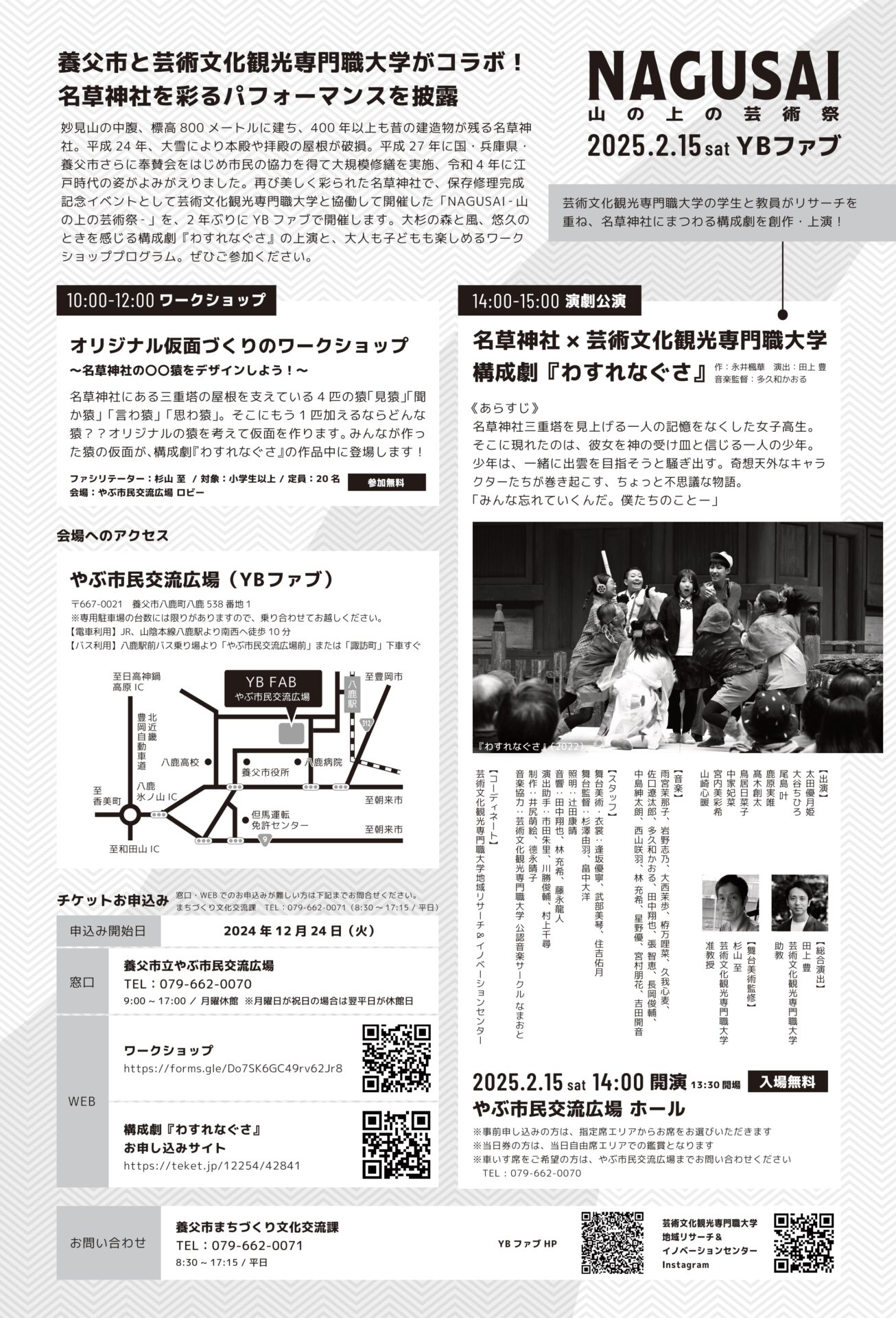 NAGUSAI~山の上の芸術祭~」を、やぶ市民交流広場で開催します。