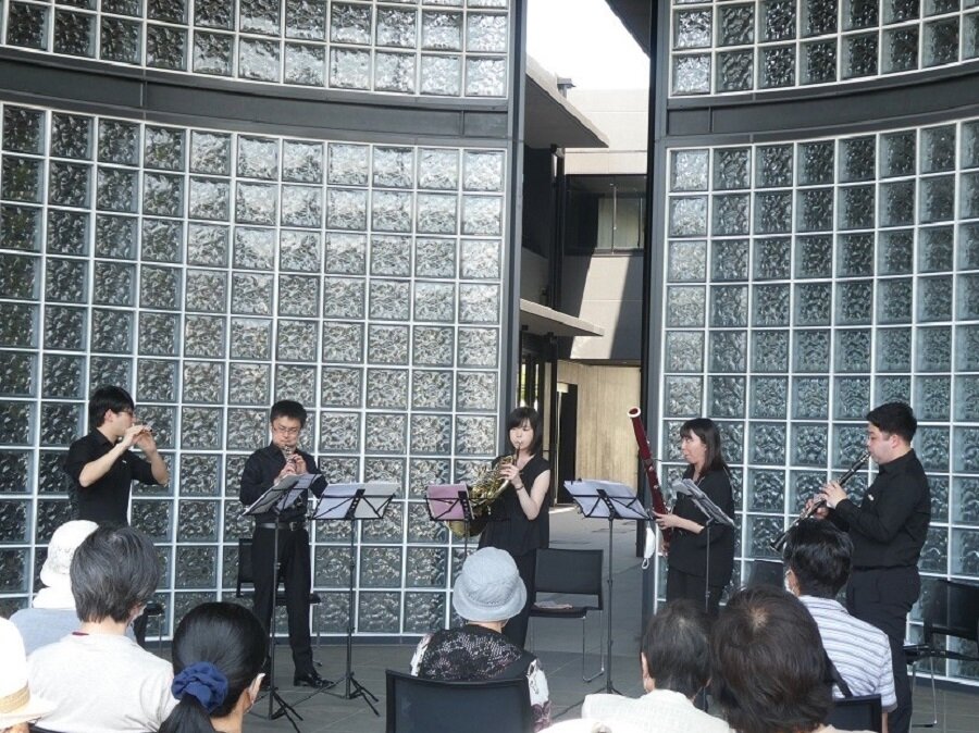 来ていただいたのは「こうのとり・クインテット」の皆さん。CMで聴いたことのある曲や童謡など身近な曲を演奏いただき、正面玄関入口のオープンスペースが素敵な音楽に包まれました。感染症対策で私語を慎んでのイベントでしたが、とてもいい時間となりました。お越しくださった地域の皆さまありがとうございました。