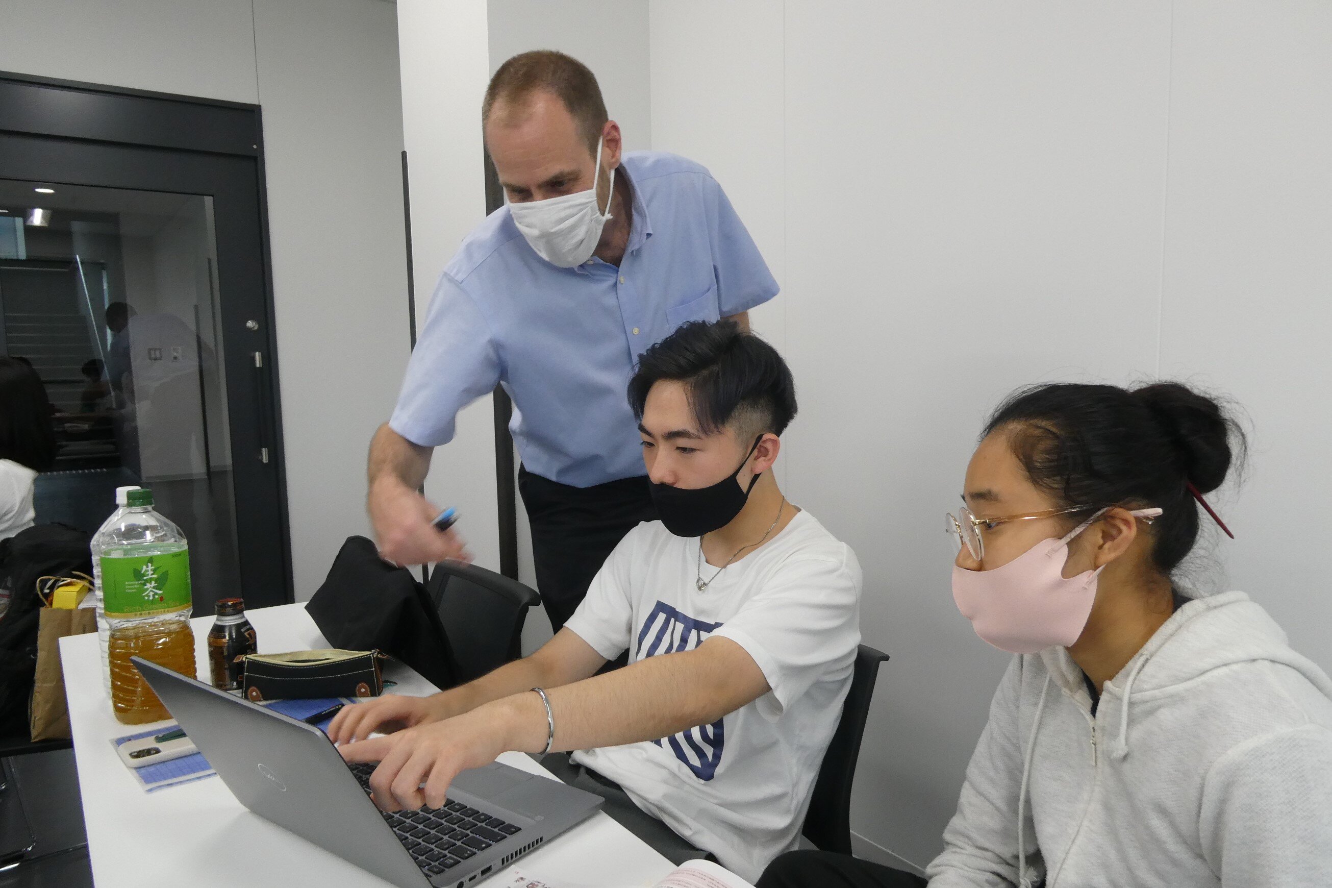 まずはペアで協力し合って脚本を作ります。その後、学生が先生に質問をして必要に応じてアドバイスをもらいました。