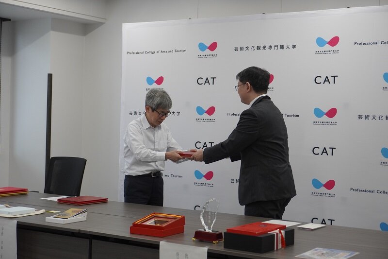 この度、台湾3大学との提携協定の取りまとめを行った修平科技大学観光創意学部の塩川教授が、3大学学長の代理として各大学の協定書とともに台湾より来学されました。