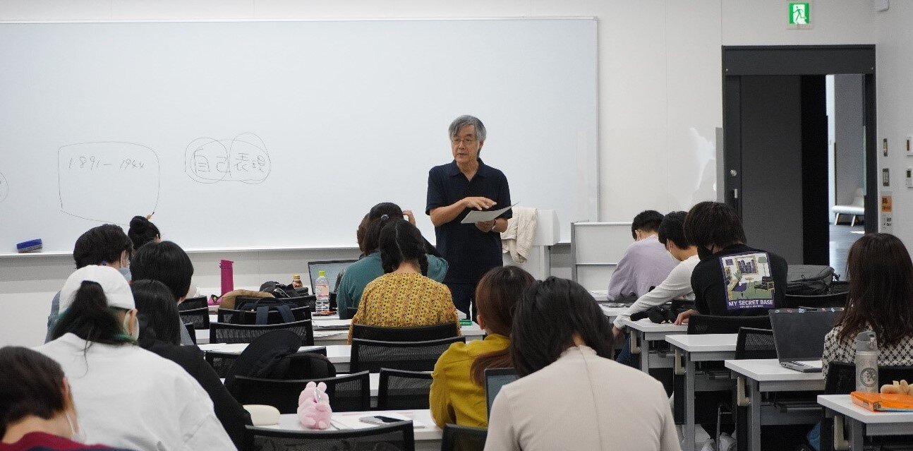 今回の授業では、荒川洋治氏の著作『慈愛の顔』『おかのうえの波』を題材に講義が展開されました。