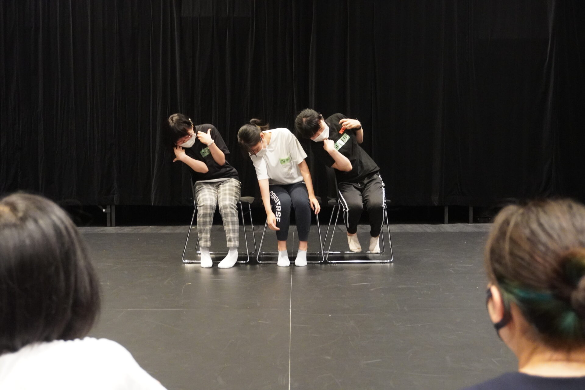 学校の教室での会話、コンビニのトイレでの会話、ジェットコースターに乗りながらの会話、全て同じ台詞ですが、演じるグループによって全く異なる雰囲気や意味を持ちます。また、短い演技にも関わらず、大きな笑いが巻き起こったり、切ない気持ちになったり、深く考えさせられたりと、学生たちはお互いのオリジナリティあふれる演劇を鑑賞し合いました。