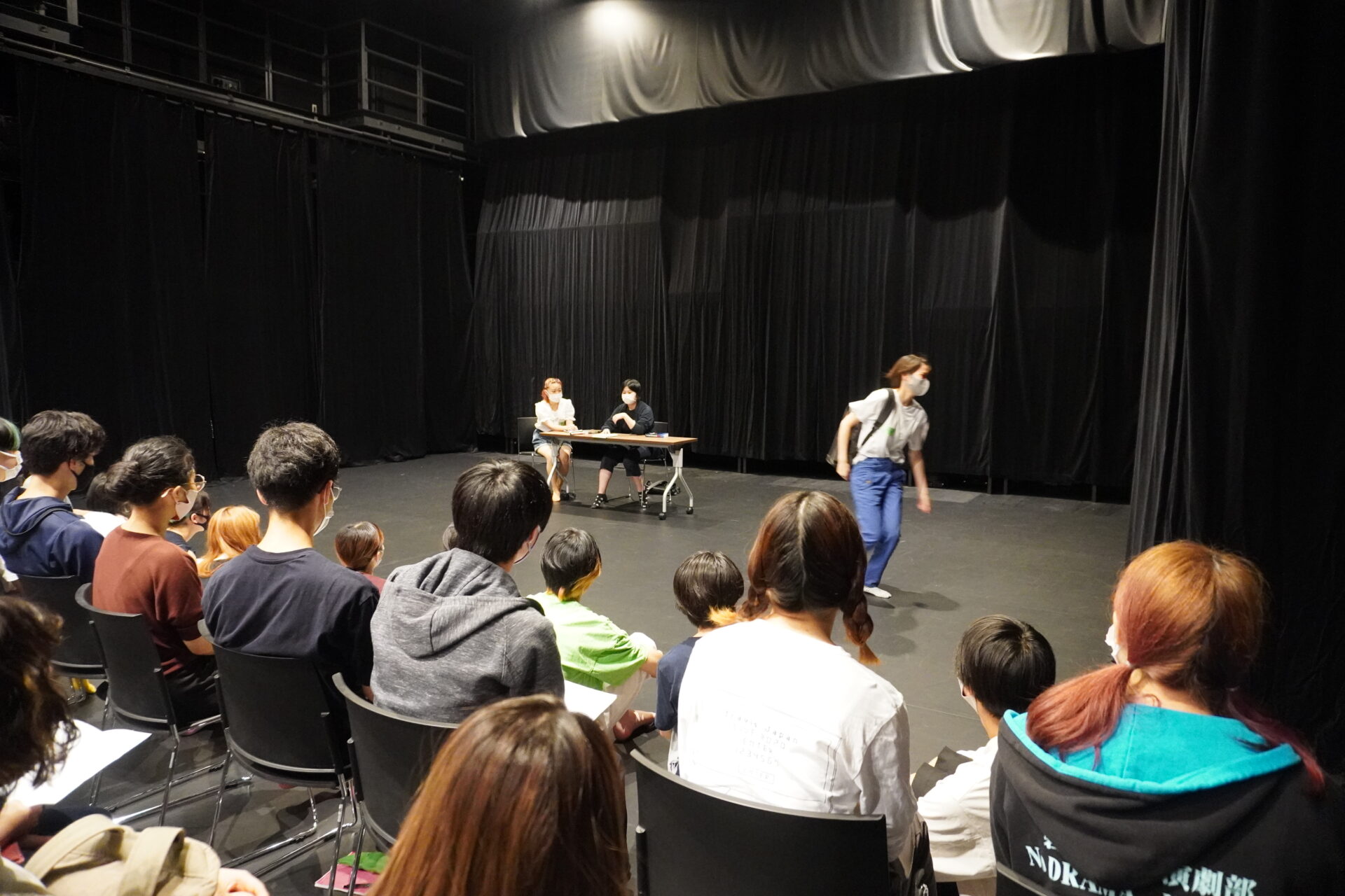 本学の山内講師に加えて、演劇家の藤原佳奈さん、俳優の佐藤蕗子さんが外部講師として来てくださいました。第一線で活躍されている方からの直接指導とあり、数多くの学生が参加しました。
