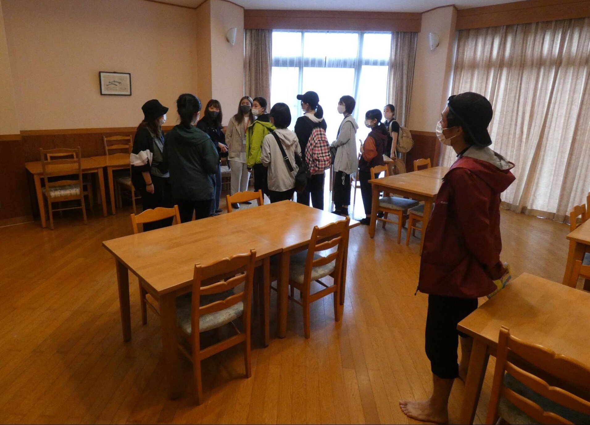 次は、ペンション翡翠の見学を経て天滝公園キャンプ場へ。ソロサイトや大人のためのキャンプ場として、森の静寂を楽しむというコンセプトは、他の実習先では見られない取り組みでした。ロケーションが変わると、見える景色も雰囲気も大きく変わります。その土地の特性を生かしたペンションとキャンプ場を見学して、宿泊ニーズに細かく対応する施設について学ばせて頂きました。