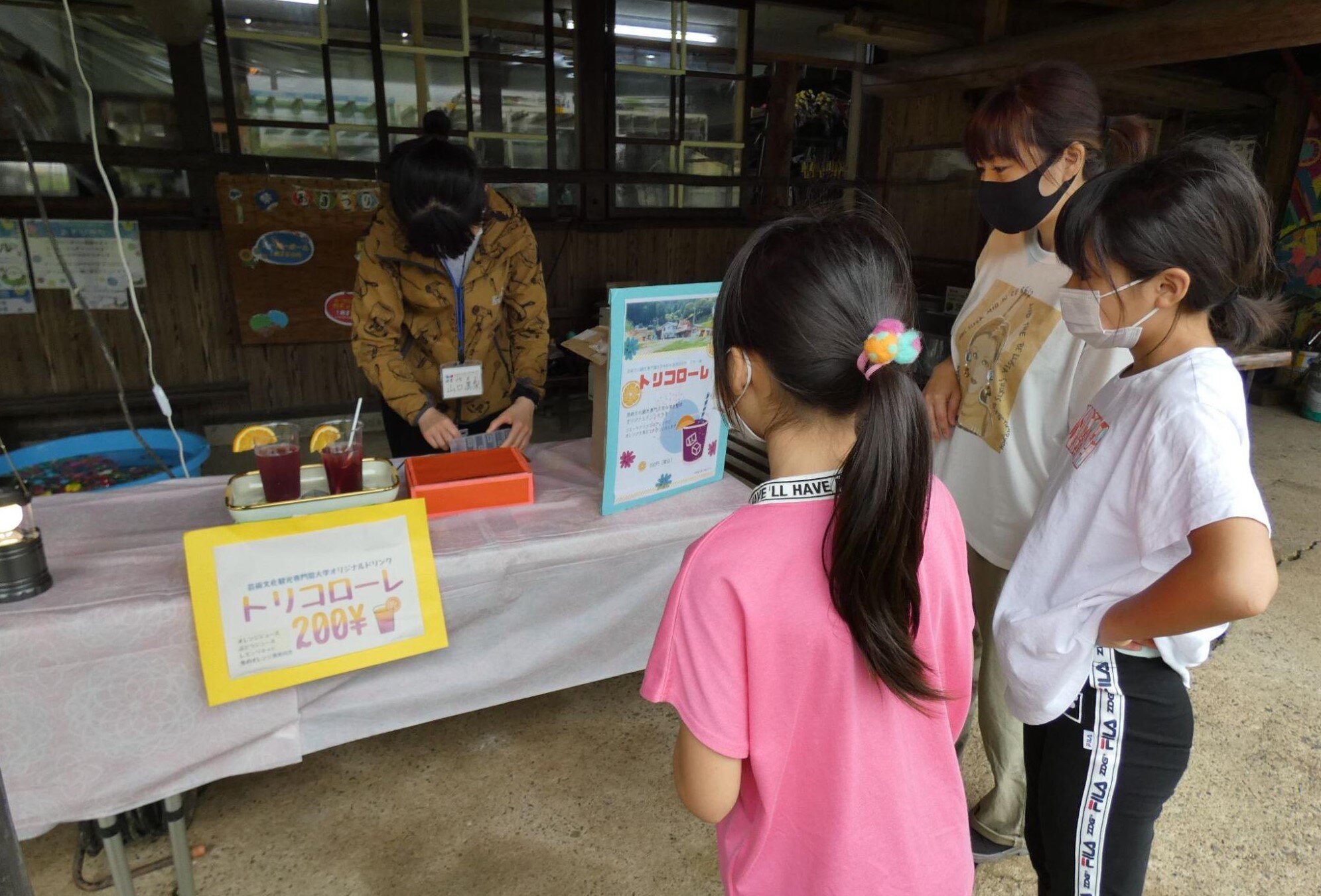 2日目から4日目までは、3つのチームに分かれて、それぞれが①若杉高原おおやキャンプ場のキャンプ研究班、②若杉高原おおやキャンプ場ジュース販売班、③くるみの里キャンプ場班で実習を行います。今回の課題は、「若杉高原おおやキャンプ場とくるみの里キャンプ場では、どのようにすれば利用客のリピート率の向上が図れるか」でしたので、積極的に視察を行い、利用者へのインタビューも数多く行いました。そして、実際に自分たちで企画し、仕入れを行い、価格設定や販売管理も行いながら商品販売を行うこととしました。学生が企画したのが「トリコローレ」という名前の、オレンジジュース+ぶどうジュース+レモンリキッド+生のオレンジ果実付きで200円という芸術文化観光専門職大学オリジナルドリンク。試行錯誤の結果、利益を出すことに成功しましたが、それと同時に商品販売の厳しさも学びました。