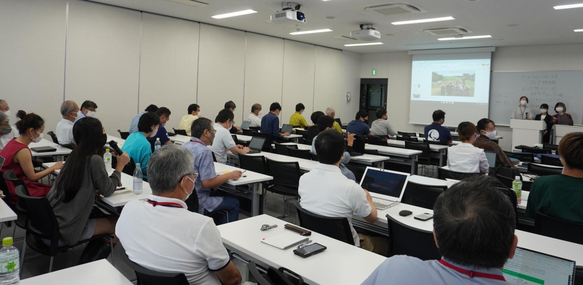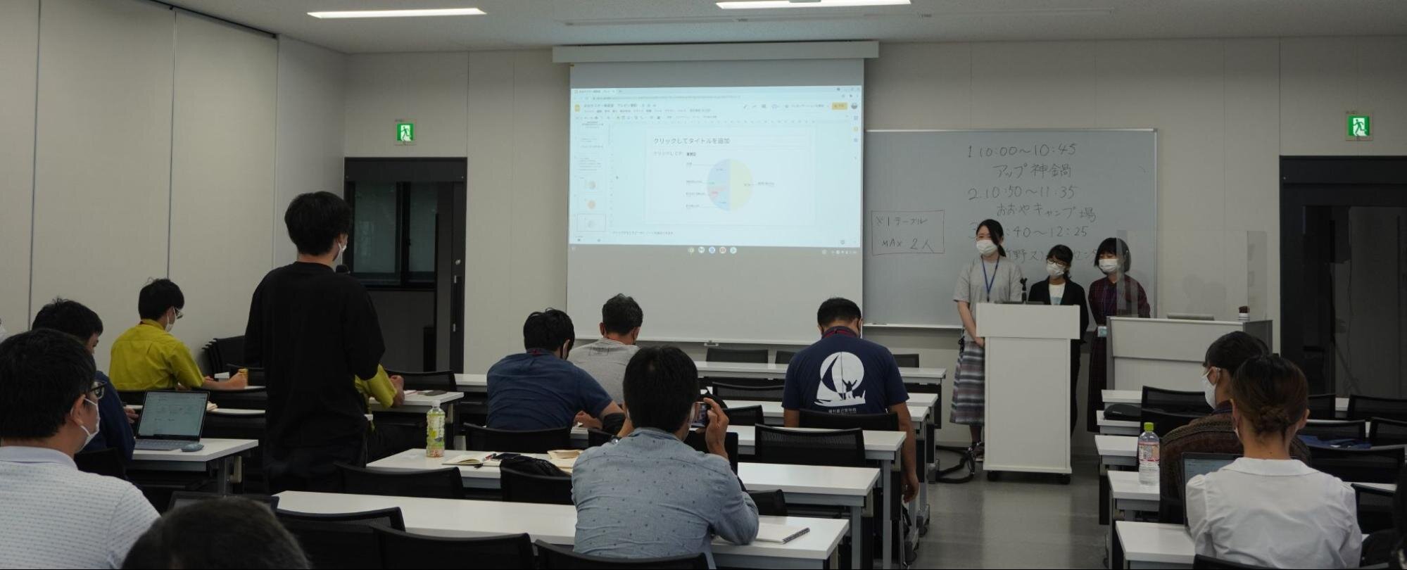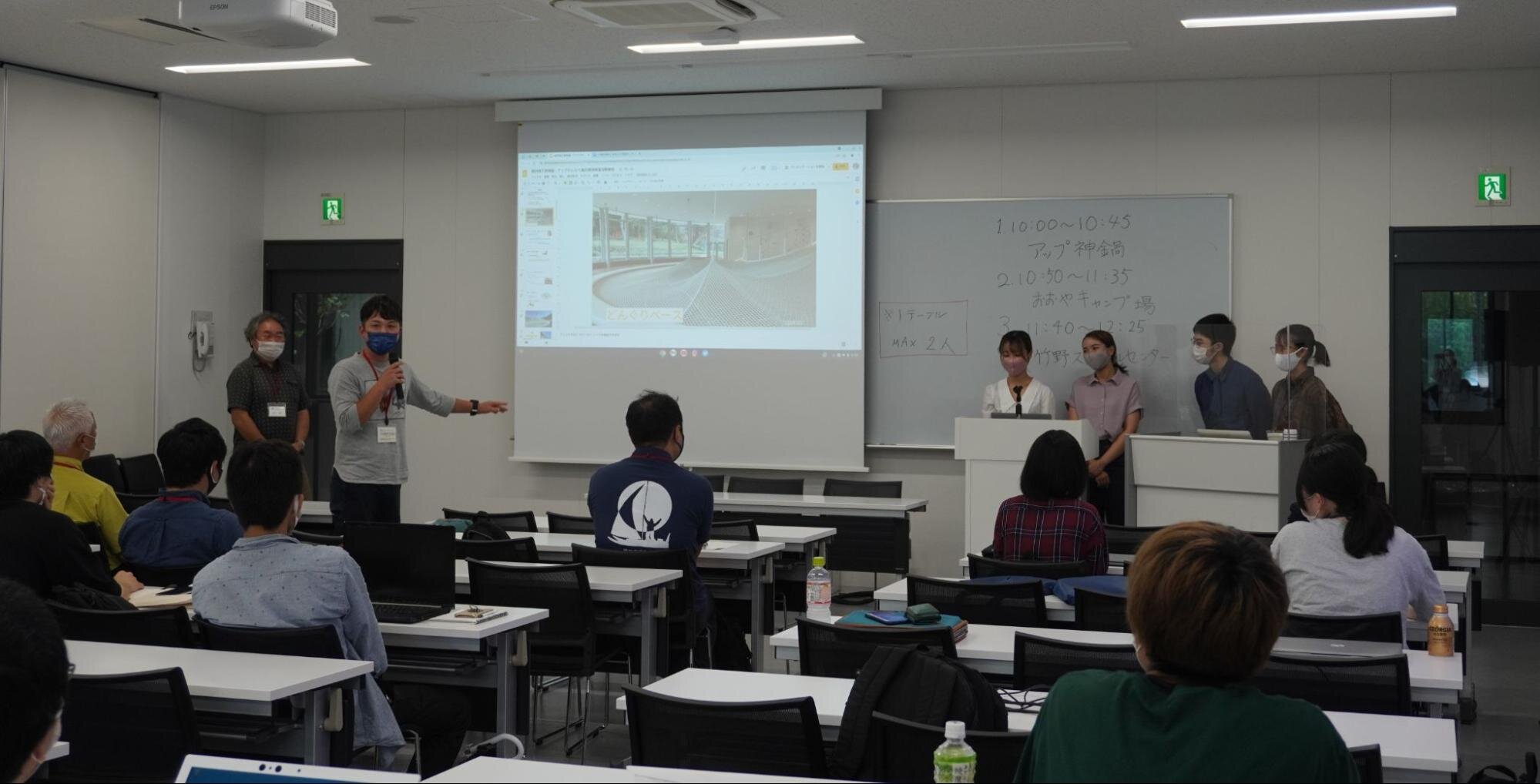 8月に実施された観光資源実習では、海コースは竹野スノーケルセンター、山コースはアップかんなべと若杉高原おおやキャンプ場へ実習に行きました。その成果を実習受入れ企業の皆さまの前で発表するという目的で、学内で報告会が行われました。