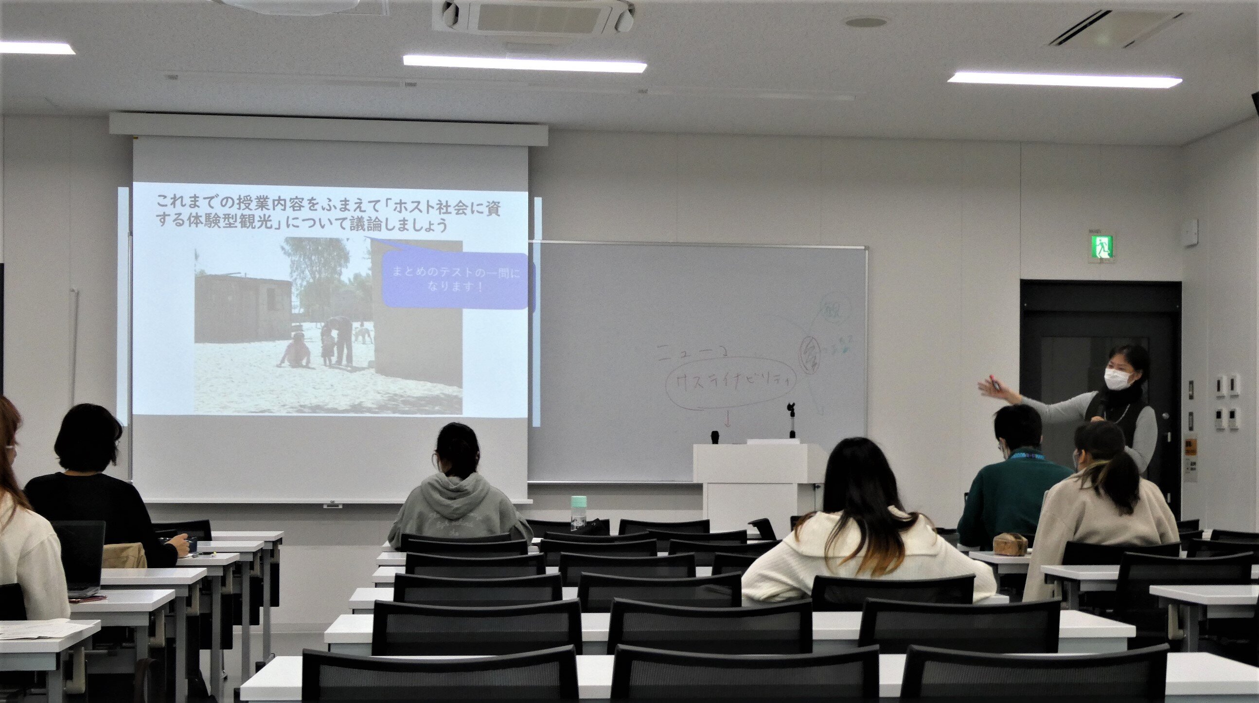 その後、学生達はグループに分かれて「ホスト社会に資する体験型観光」について議論を交わしました。学生からは、ホスト社会側と観光客側、どの立場から見るかによって「リアル」か「フェイク」かが異なるのでないか、知らぬが仏(結果として「ほんもの」を知らない方が良かった)になってしまうかもしれないので、ホスト社会が「リアル」か「フェイク」かを決めてしまえばいいのではないかなど、「文化の真正性」について様々な意見が出ました。