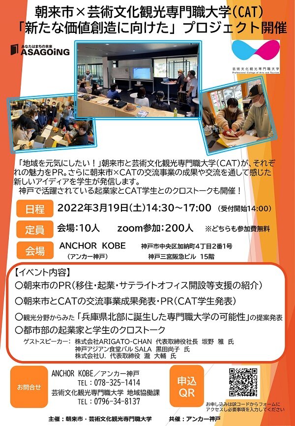 朝来市×芸術文化観光専門職大学「新たな価値創造に向けた」プロジェクトをANCHOR KOBE(アンカー神戸)にて開催します。