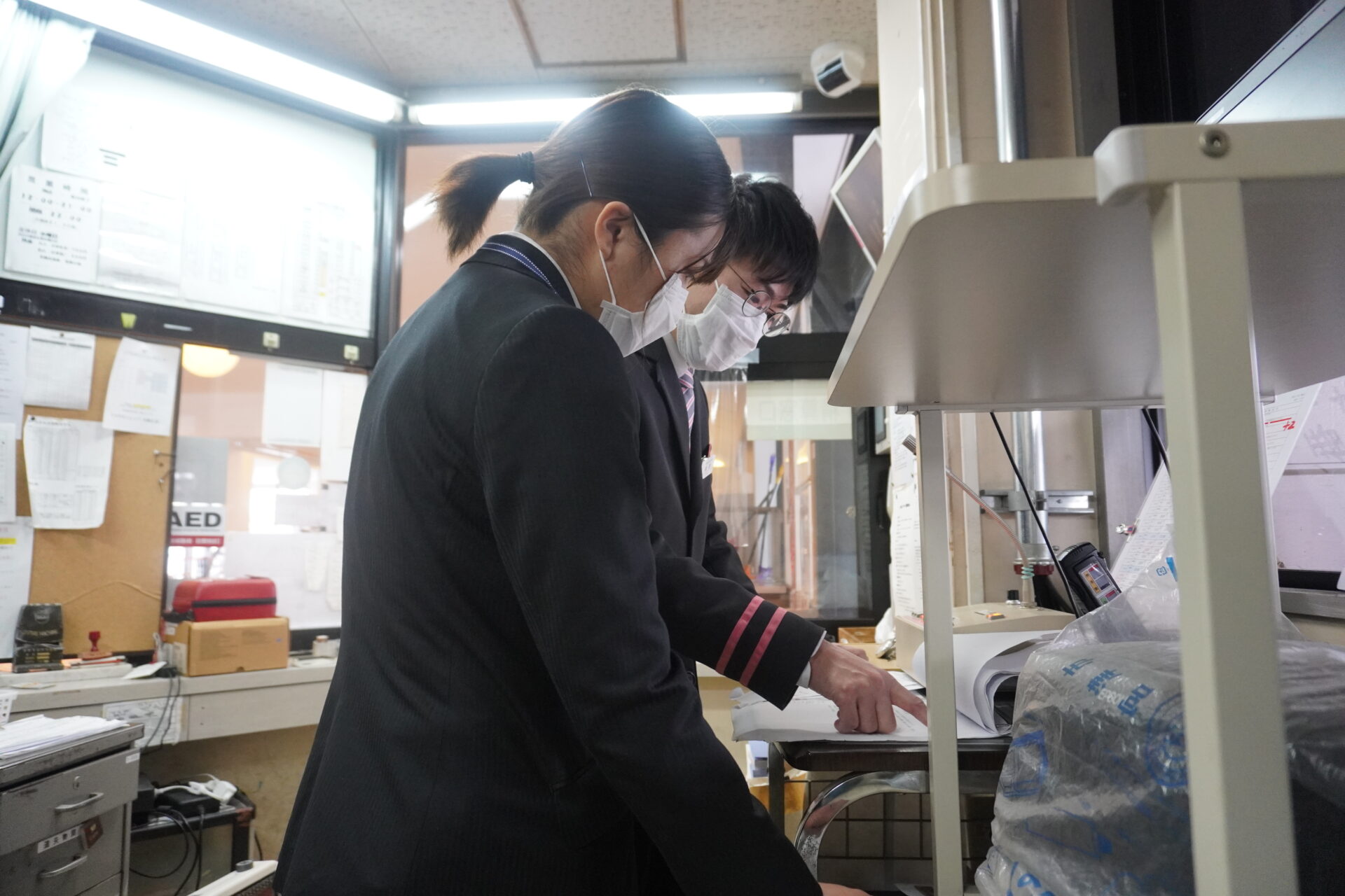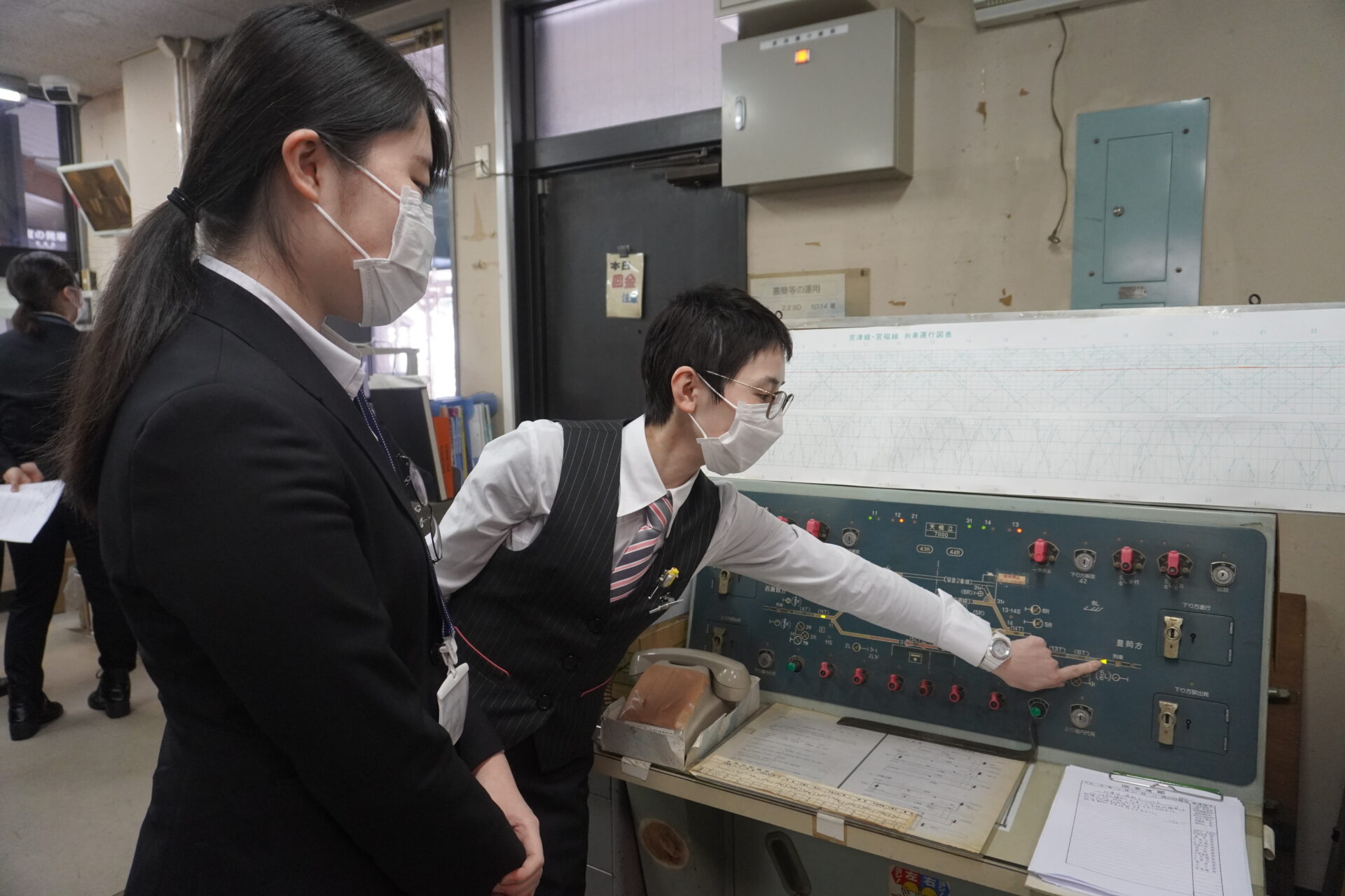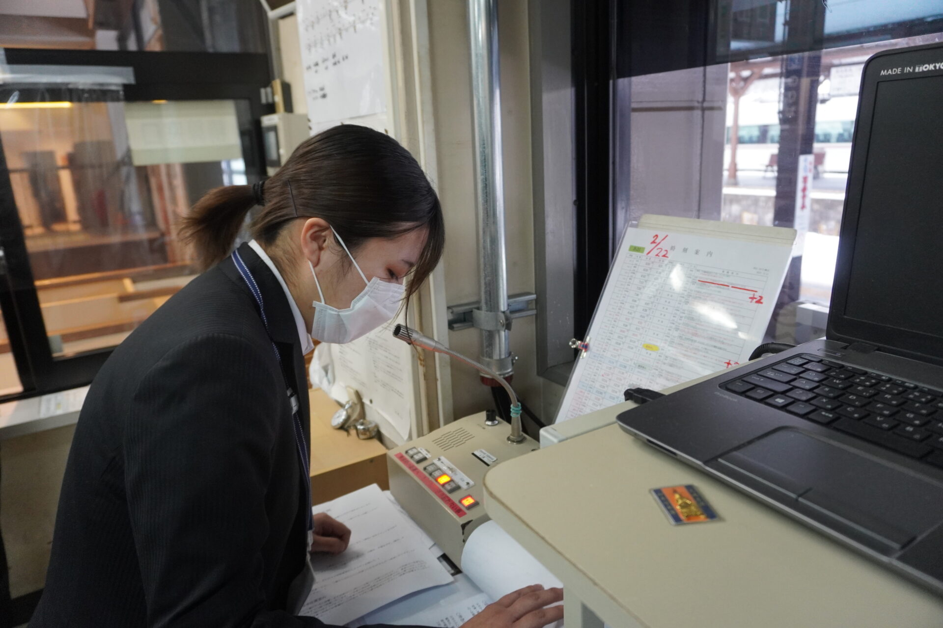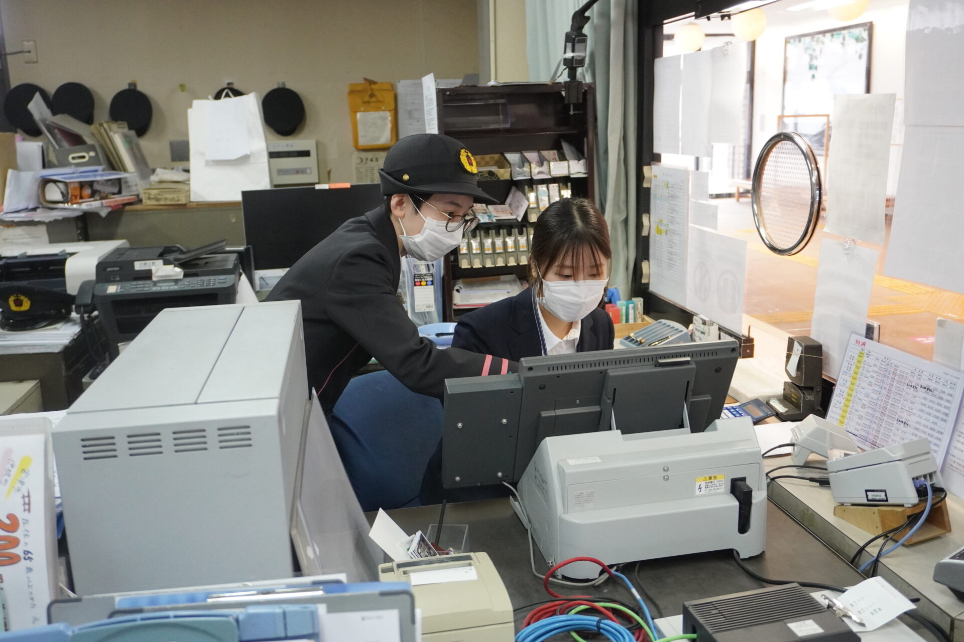 指導官である駅員さんに親切に教えて頂きながら実際の窓口業務を行いました。主に切符の発行や、構内放送をさせて頂きました。