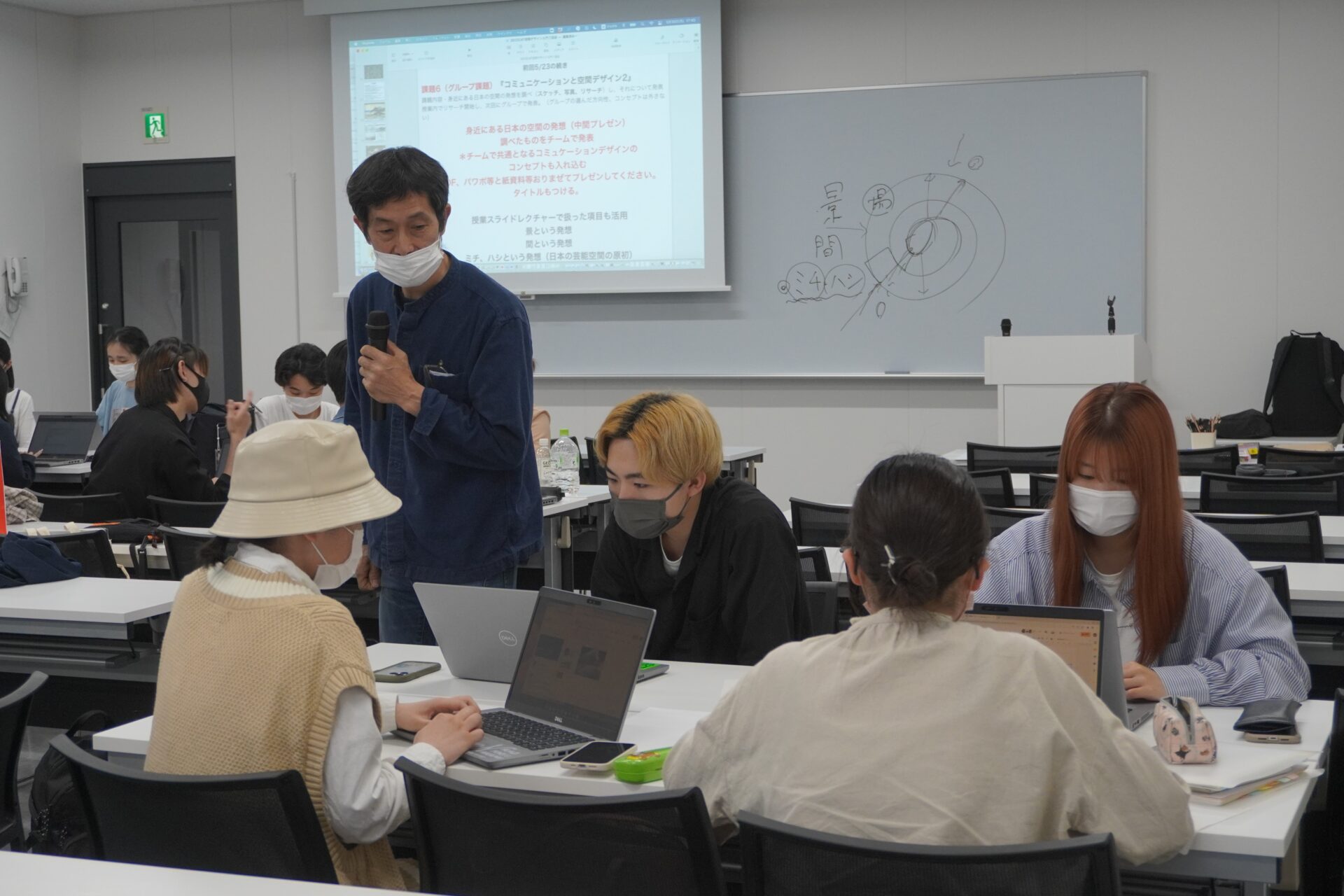 そして講義の後半では、学生がグループに分かれて身近にある日本の空間の発想について調べ、その後、全員の前で中間発表を行いました。