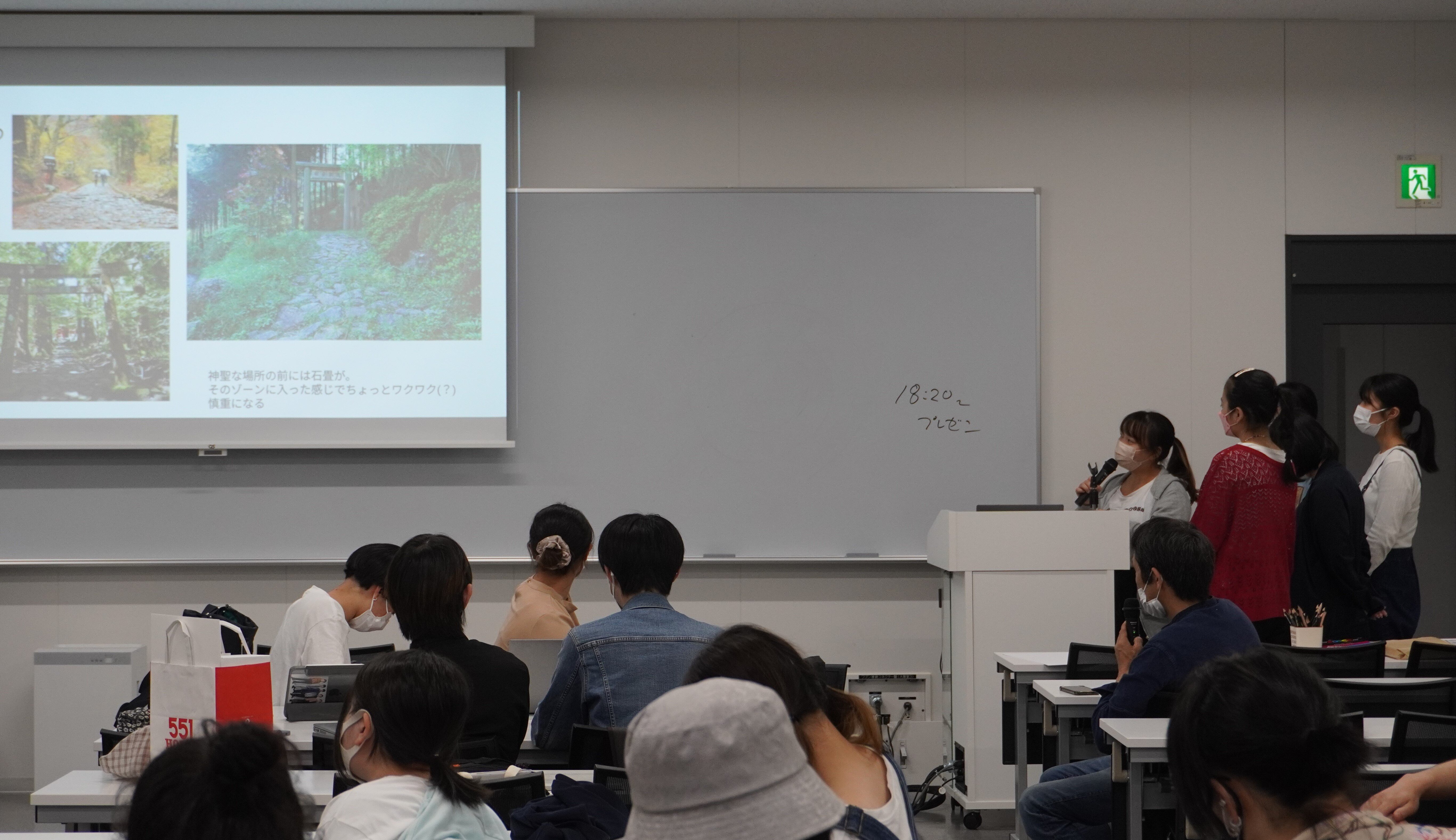 あるグループでは、神社の石畳が空間にもたらす作用について発表していました。
