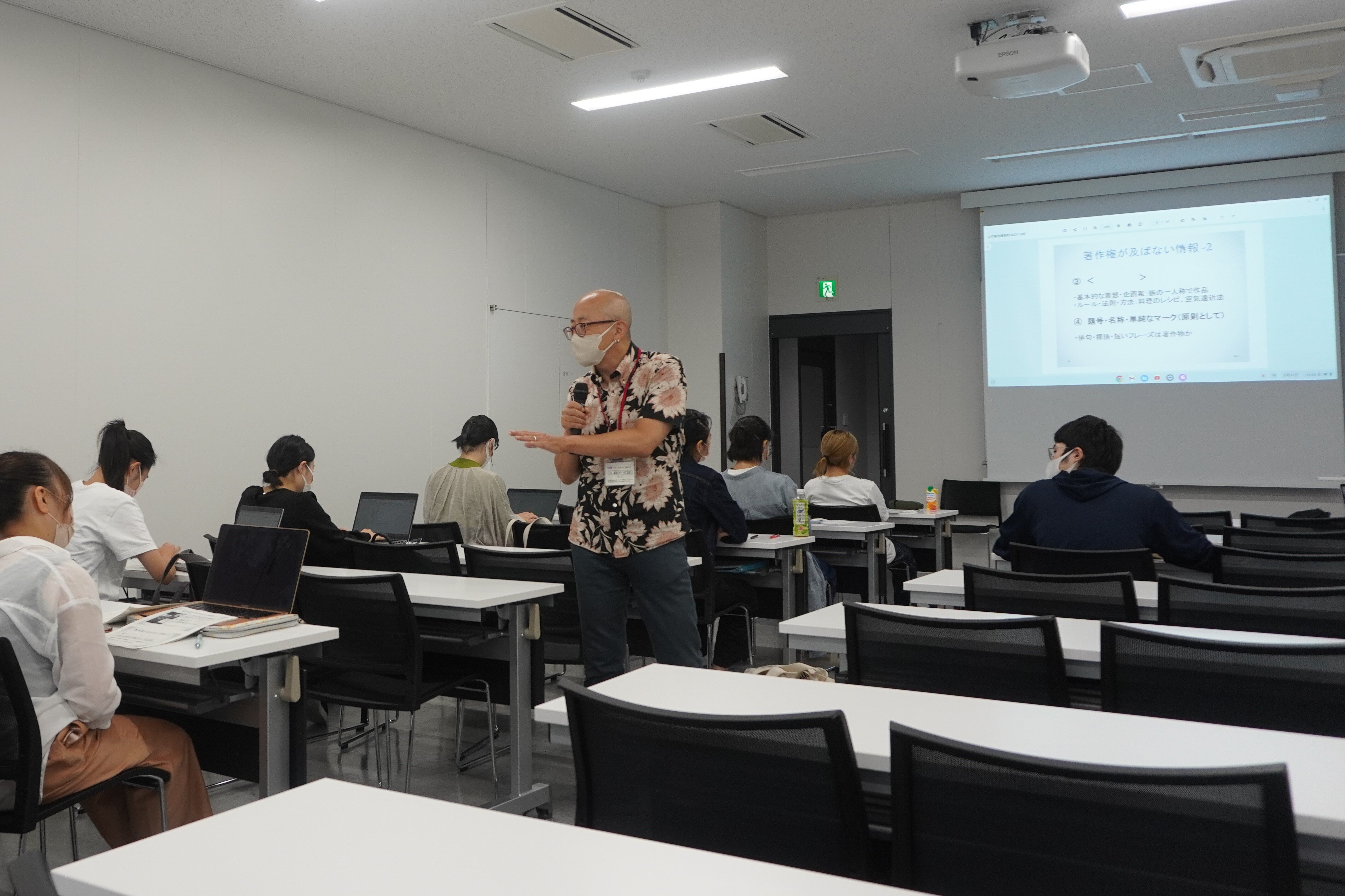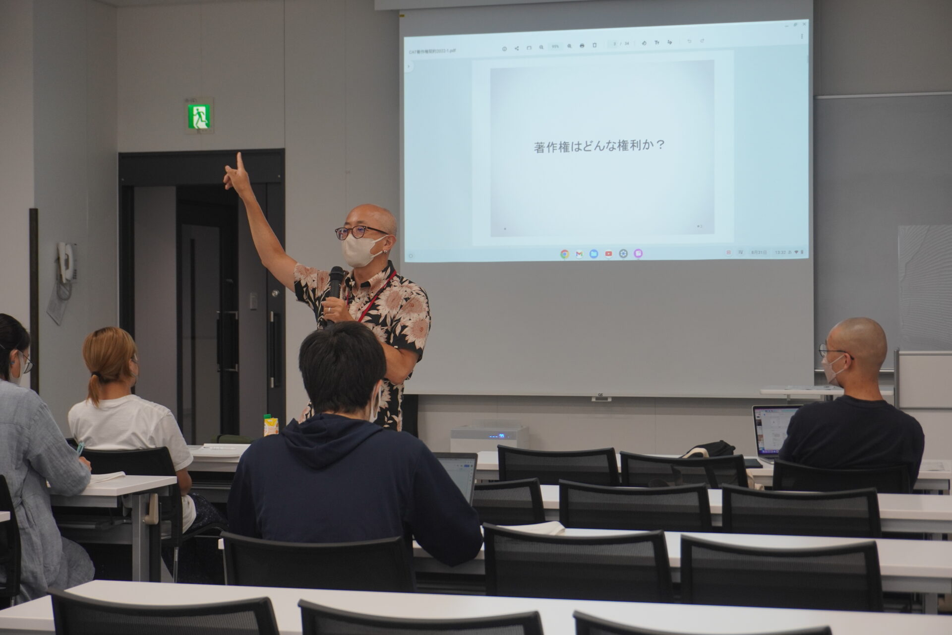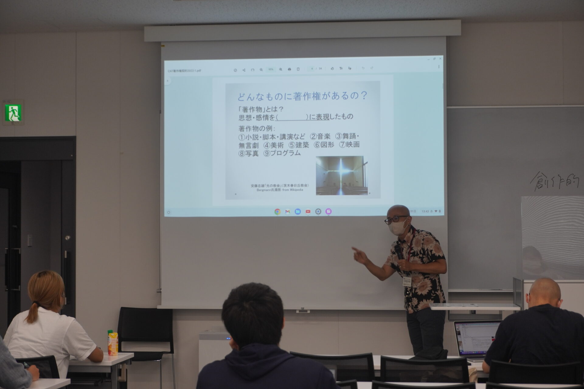 他にも過去の様々な訴訟事例を解説しながら、著作権に関しての知識を深めました。授業の最後には福井先生から「著作権の訴訟結果はその時代の傾向に左右されていることが多い。その結論を出すことで未来はどうなるのか?そういう視点を常に持っておくことが大切。そして知識を持っていることが必ず武器になる。」というお話がありました。