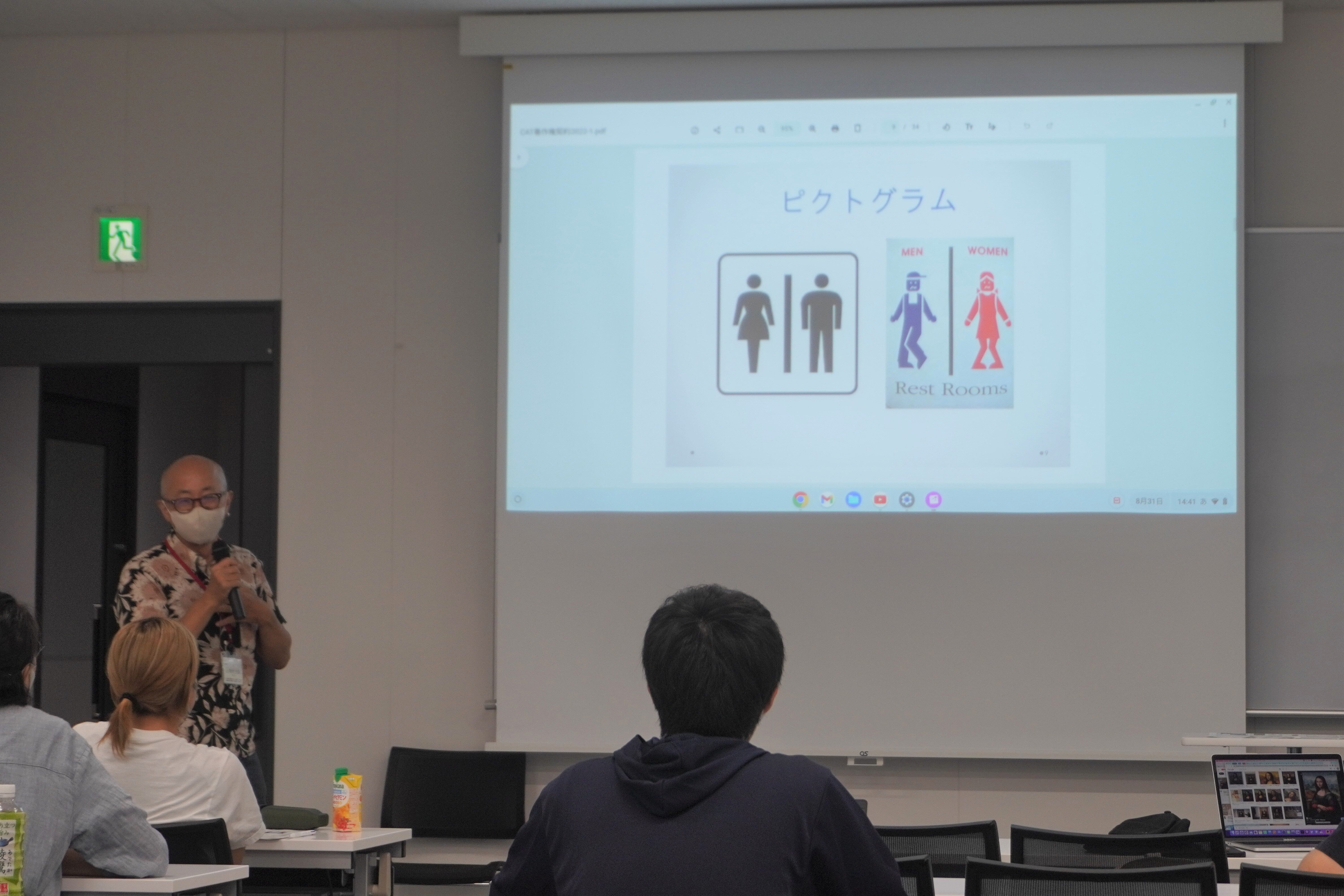 また、反対に著作権が及ばないものとして具体的にどんなものがあるのかについても説明がありました。上の写真はトイレのマークです。原則として単純なマークは著作権が及ばないものと考えられるそうです。左のデザインはシンプルなものなので著作権は発生しませんが、右のデザインは創造的なものなので著作権が発生する可能性が十分にあるそうです。