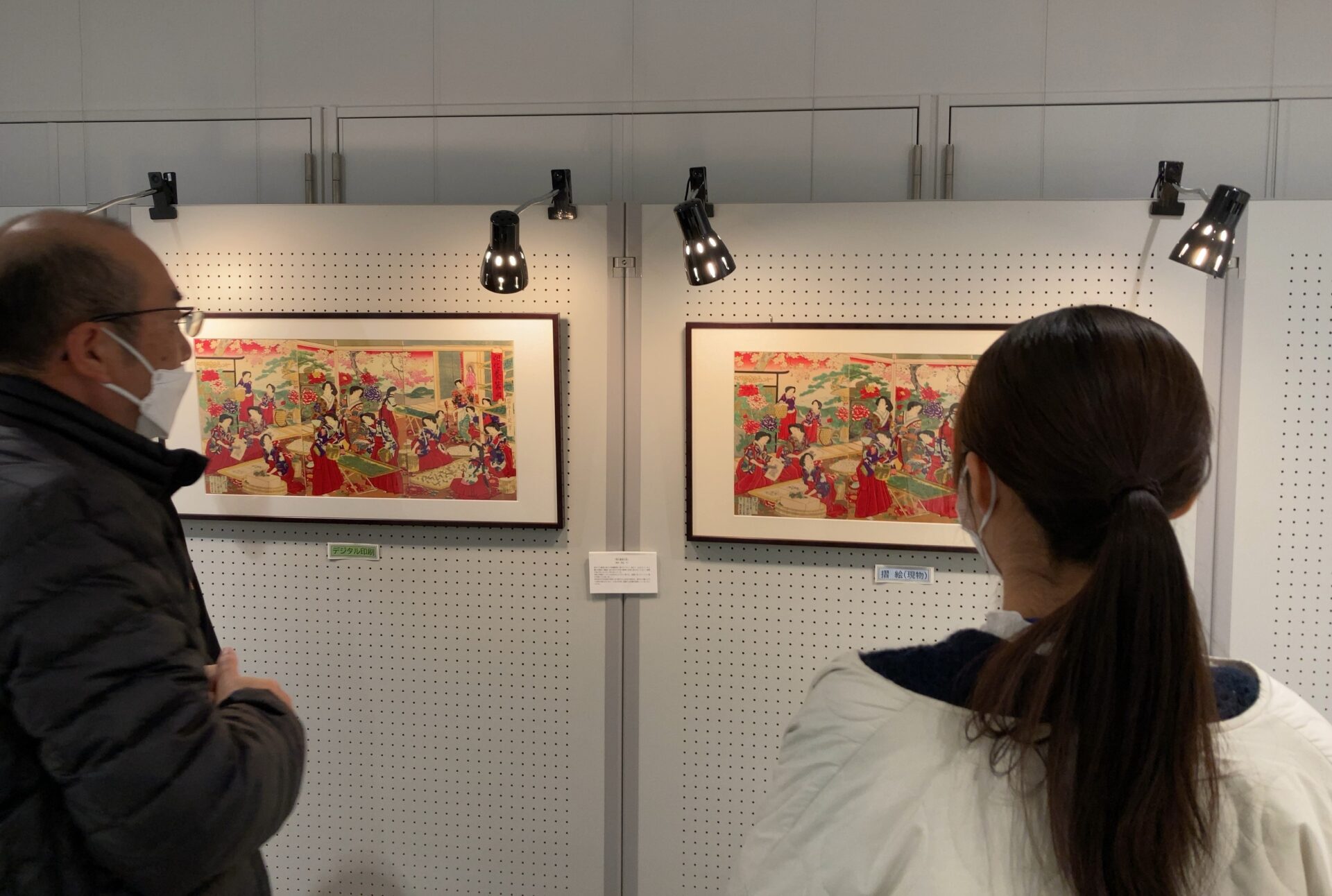 展示室では、『浮世絵に描かれた養蚕展』が2023/2/21~2023/3/12まで開催されており、この準備に、学生も携わらせていただきました。