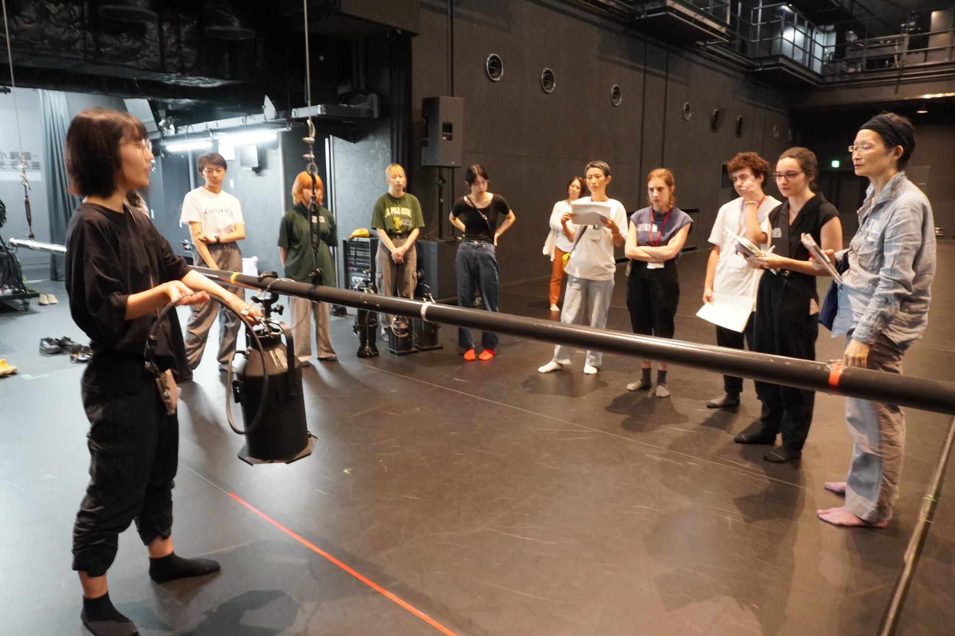 ▶全員で安全のための施設利用講習会を受けました。通訳さんも交え、座組の全員で劇場の正しい使い方を再確認しました。