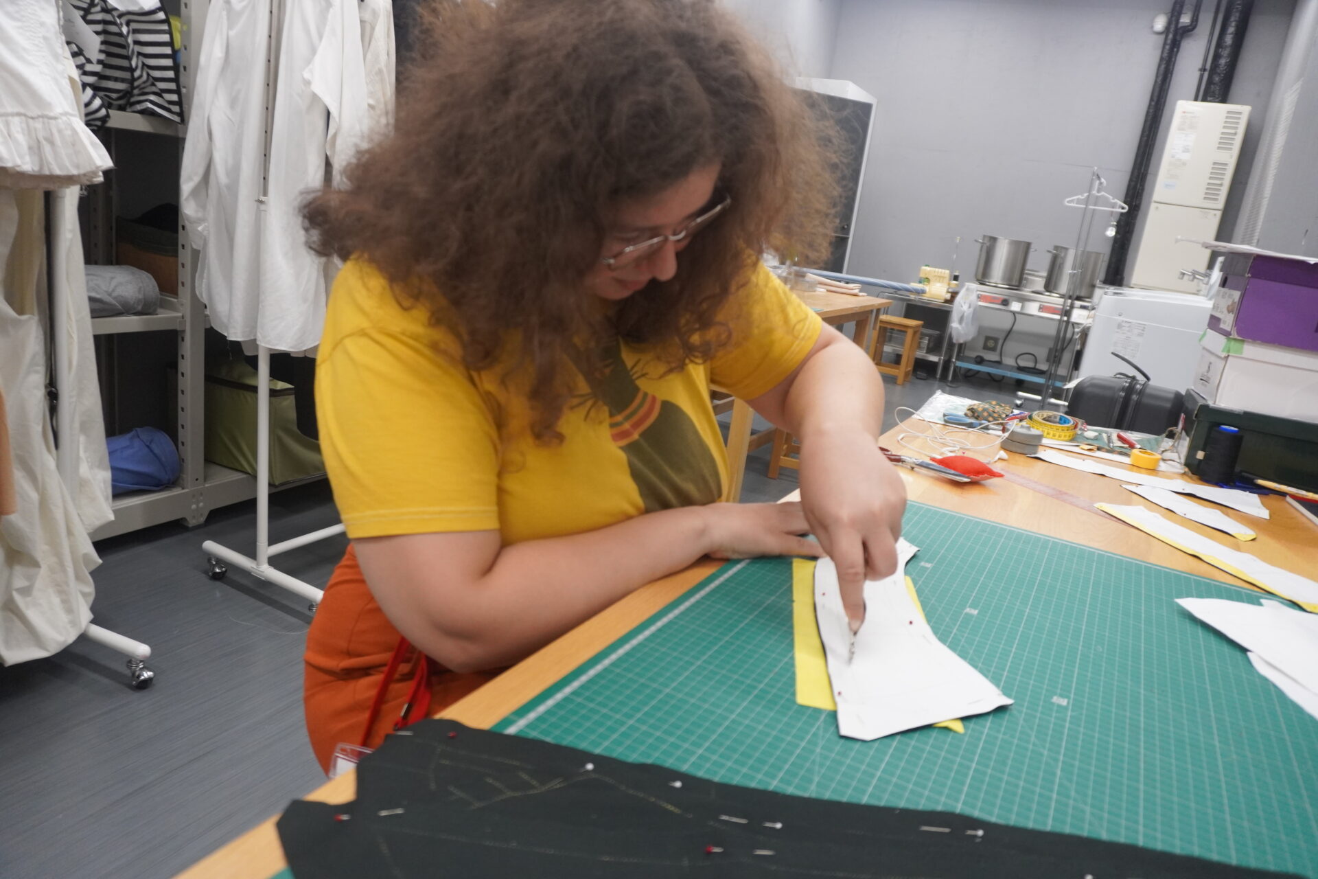 ⼿作りの場合は、役者のサイズを測った上で、ゼロからパターンをおこしていきます。