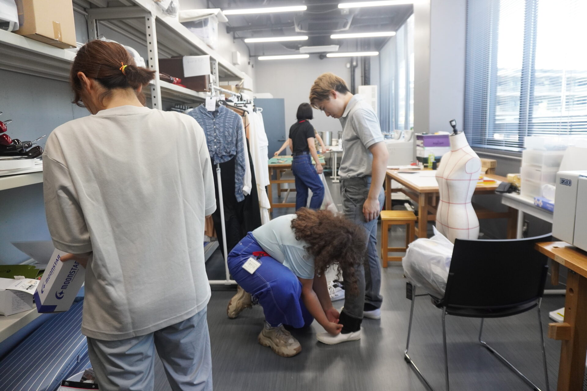 実際に⾐装を役者が⾝につけ、稽古を⾏い、機能に問題がないか確認します。