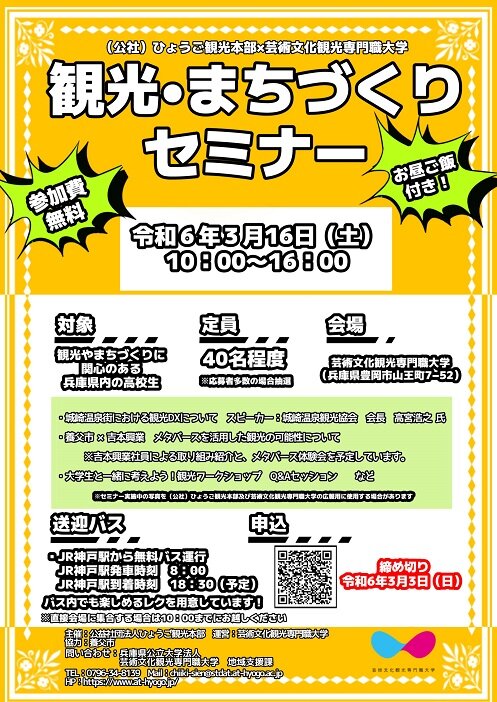 (公社)ひょうご観光本部×芸術文化観光専門職大学「観光・まちづくりセミナー」を 開催します!