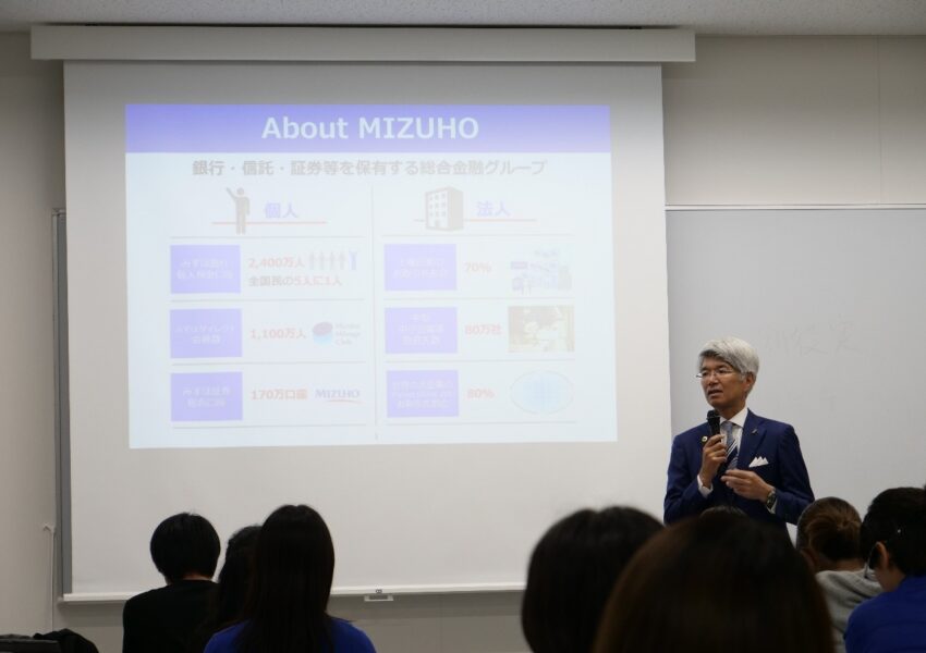 藤原弘治氏(みずほフィナンシャルグループ特別顧問)を講義のゲストスピーカーとしてお迎えしました(グローバルリーダー入門、小畑克典准教授担当)